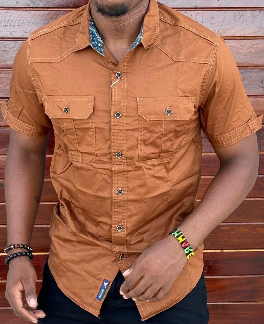 Fashion Men Shirt With Two Sided Pockets And Short Sleeves