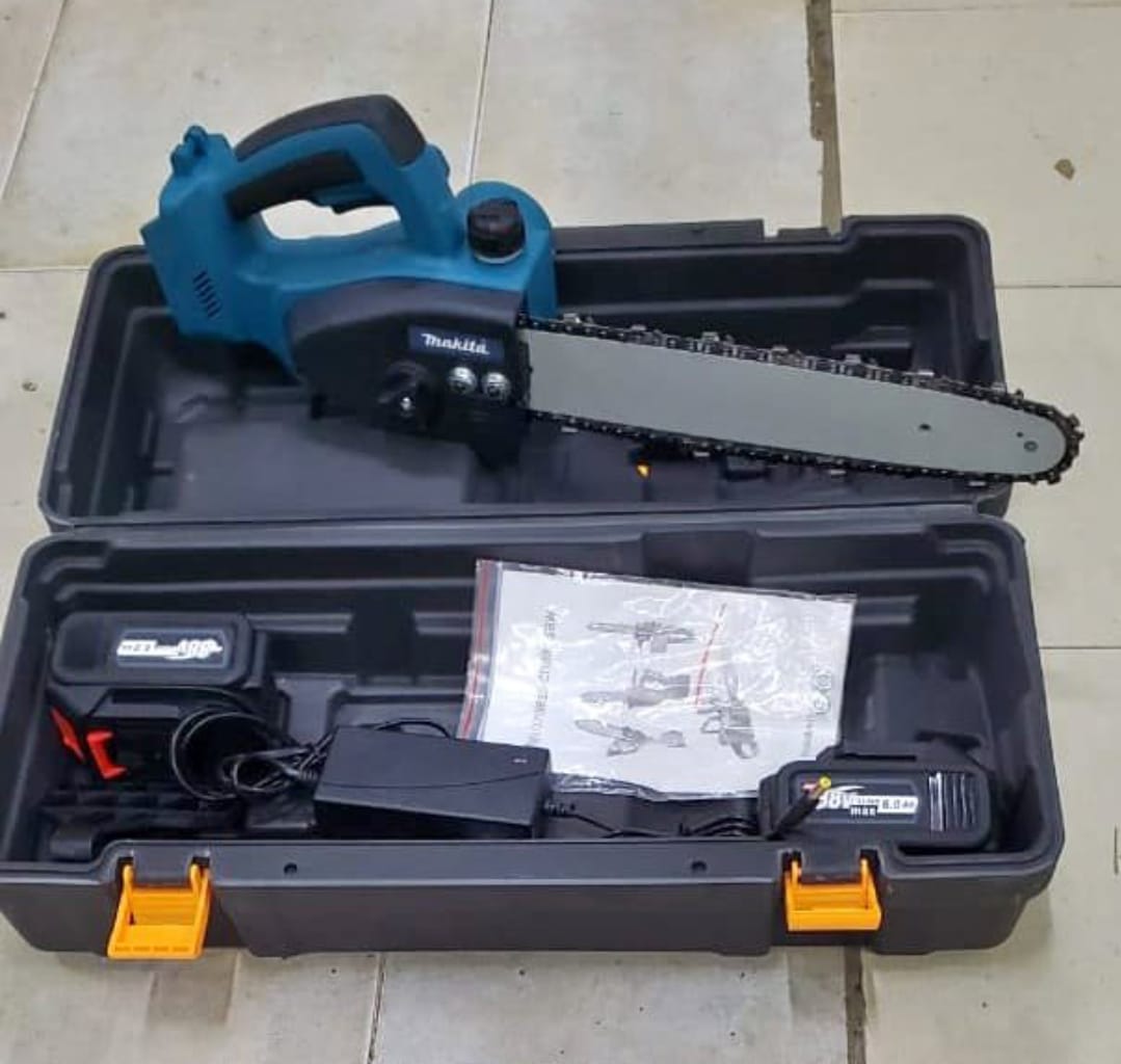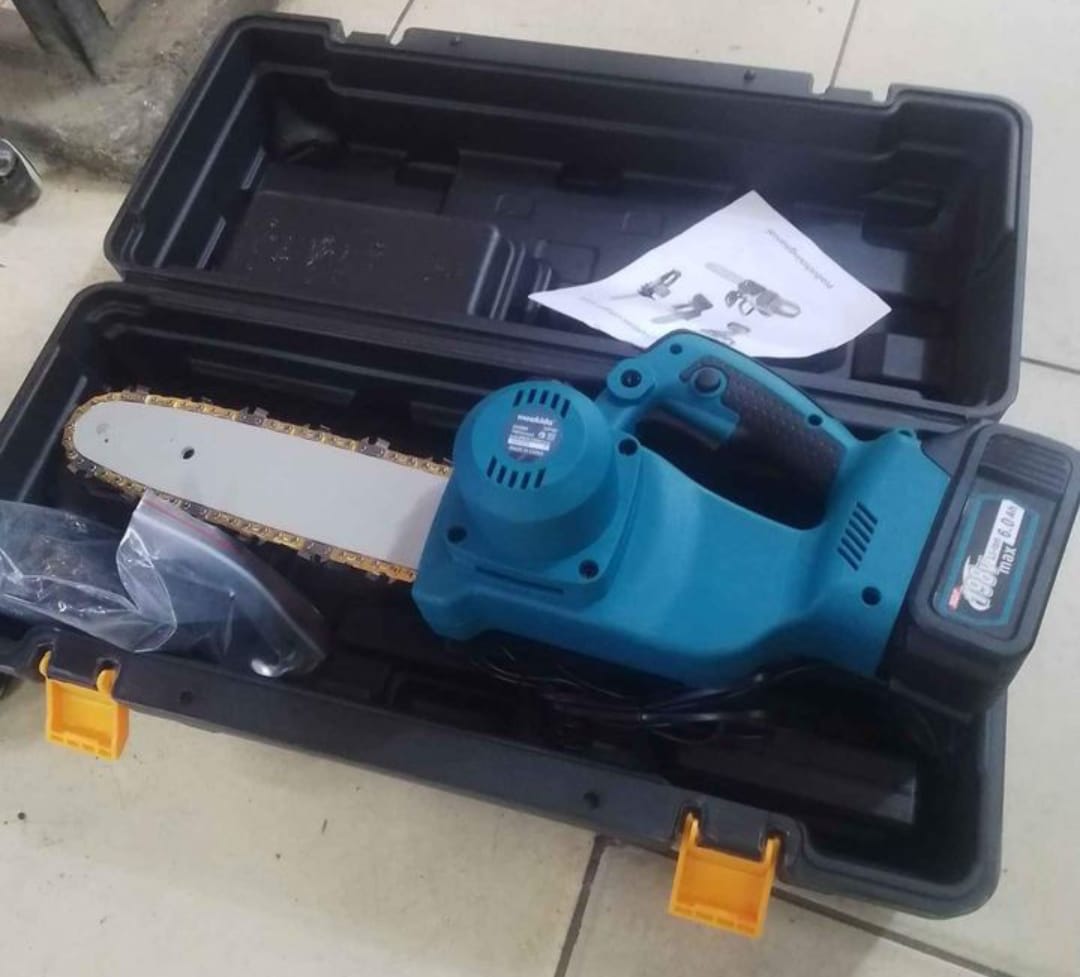 Rechargeable Chain saw Type – Meakida – Hard steel chain, Portable chain saw, 12-inch blade, Two batteries